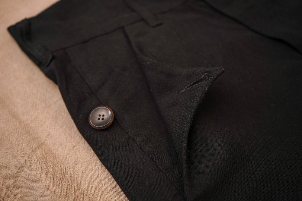 Material: 100% linen Body Fabric, 100% silk finishing thread, Genuine horn buttons