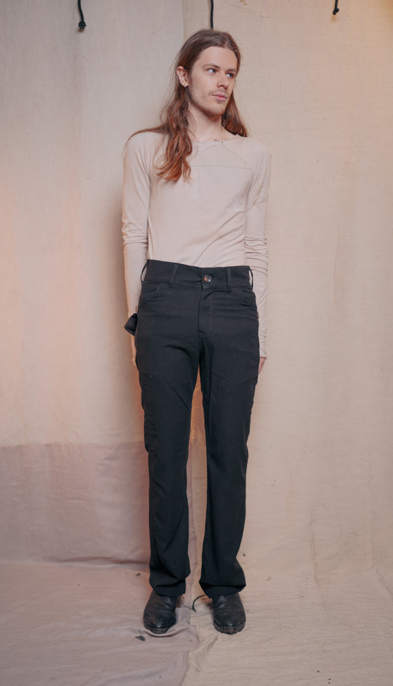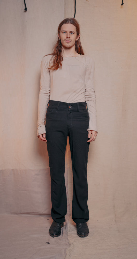 A quiet silhouette that carries weight—Grave trousers are cut in 100% mid-weight linen, designed to drape with presence. The bootcut leg introduces a gentle flare, elongating the form while allowing movement. The fabric is chosen to evolve, responding to the wearer’s time and touch.